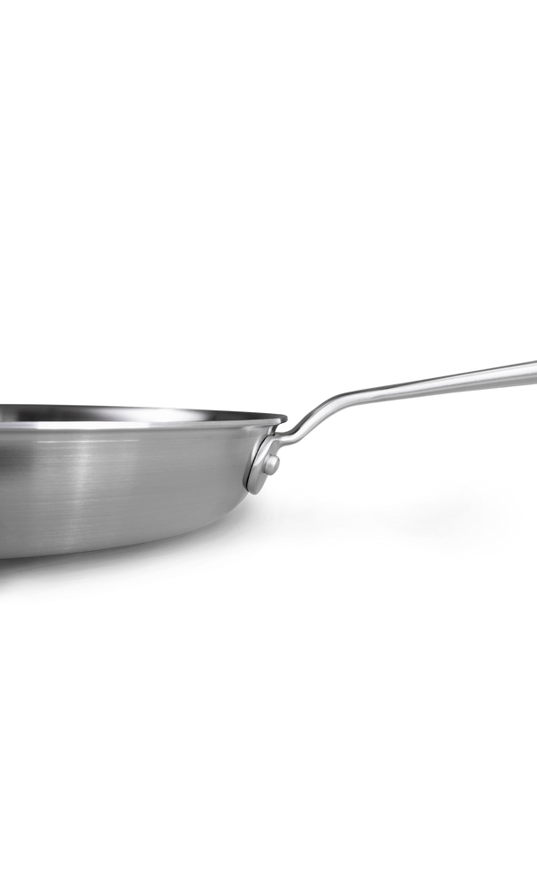 Elevate your culinary prowess with our 3-ply Stainless Clad Frying Pan, meticulously crafted for both professional chefs and home cooks. Experience rapid and even heating, perfectly balanced weight distribution, and a generous cooking surface. Our pan seamlessly combines Korean design with engineering excellence, ensuring it is available everyday for years to come.