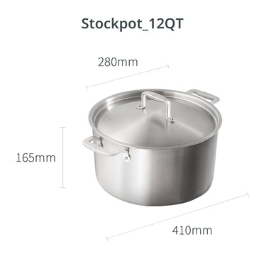 12 QT / 30 cm Stockpot (11.4 L): 280 mm inner diameter; 165 mm height; and 410 mm total length.