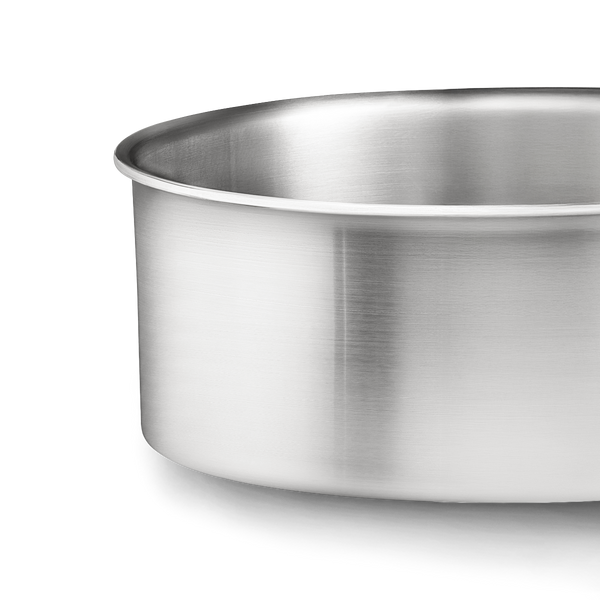Designed over two years, the hollow stainless steel handle is oven-safe and balanced for a secure, controlled hold from stovetop to table.