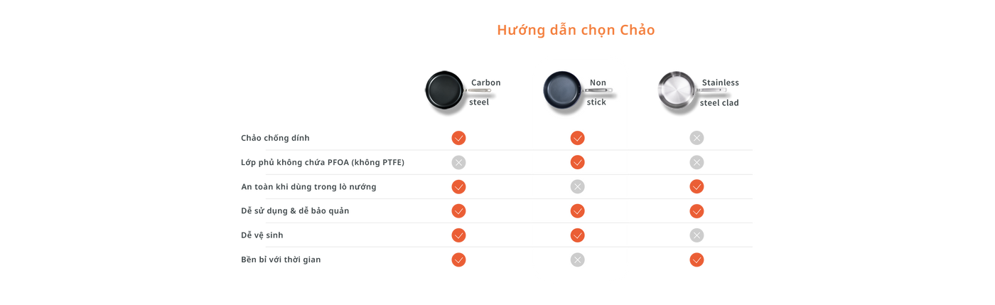 Không lo thức ăn dính chảo. Ít dầu hơn. Dễ dàng vệ sinh hơn.